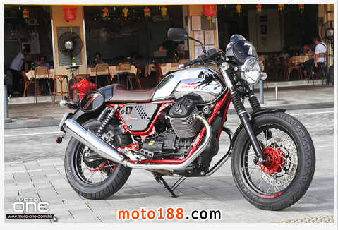 限量年產(chǎn)1000臺:每臺車架上均列明獨(dú)有限量序號,以電鍍紅色雙搖籃式車架配以黑色車身。耀目閃亮的電鍍銀色油缸上面,配置精緻烙而有MOTO GUZZ 字款的皮帶, 優(yōu)雅啡色猄皮單座位設(shè)計(jì),可調(diào)較位置的腳踏,輕量化的手把,Bitubo 可調(diào)整的避震,傳統(tǒng)鋼線轆呤,杯士軚配以傳統(tǒng)RACER 的座姿。種種不同的細(xì)節(jié)足以令V7 II RACER 成為與眾不同的車款。加上新一代六速波箱,ABS 剎車系統(tǒng)及MGCT 軌跡系統(tǒng),更加如虎潻翼。因此, V7 II RACER 是每一位電單車愛好者夢寐以求的收藏珍品。