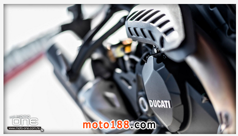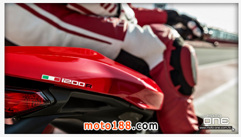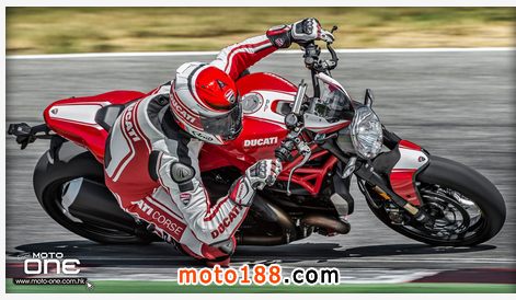 ●從DUCATI MONSTER R官方照片已看到賣弄新車的賽車性能,極限傾角達到50°,因此改用了SUPERBIKE規格的200闊輪胎,S版則是190,廠方聲言座姿也適合有較高身高的騎士乘座。