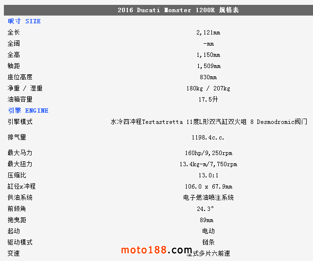 ●早前推出的DUCATI MONSTER S版本,馬力及扭力比R版低。