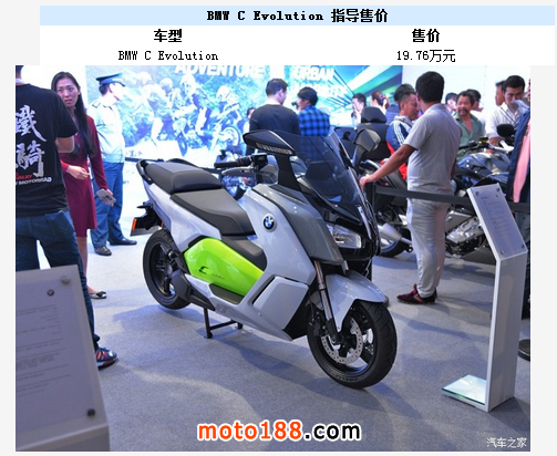 電動(dòng)摩托車BMW C evolution配備8千瓦時(shí)大容量鋰離子高壓蓄電池,充滿一次電可行駛最多100公里;通過(guò)家用標(biāo)準(zhǔn)220伏/12安家用插座充電時(shí),從無(wú)電到完全充滿大約需要4個(gè)小時(shí)(采用220伏/16安電源時(shí)僅需3小時(shí))。