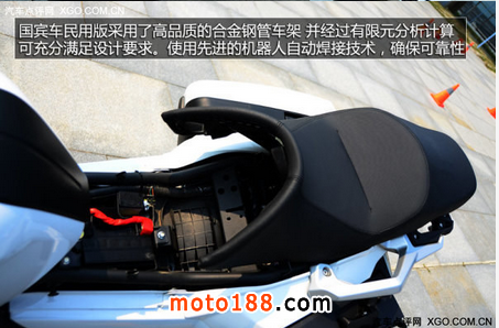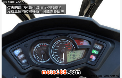 具體功能操作方面,各個按鍵、可調節力度的離合器與前剎車均給人感覺觸感和力度都較合適。儀表讀取清晰,后邊箱左右有兩個卡扣,需要一定力氣才能關妥,坐墊軟硬適中,只是好拆下來不好安裝,需要一定的巧勁。