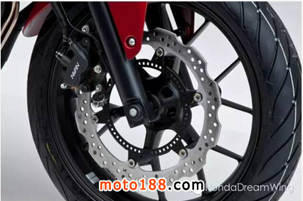 與強勁動力相呼應的是CB500F的剎車系統,配備了320毫米的波浪形前碟盤和240毫米的后碟盤,同時有ABS防抱死剎車系統可供選裝。