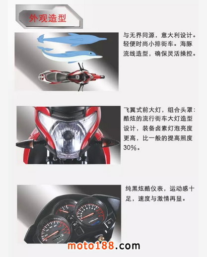 “馭界”是一款在造型上極具動感的車型,車身設計完美演繹歐洲流行街車時尚精髓,在輕跑街跑車的基礎定位上恰到好處地渲染個性,整車外觀張力十足、耐人回味。在動力性能方面,發動機的充沛活力完美貼合車型定位,再配合舒適靈活的操縱所營造的不俗駕馭體驗和頗具競爭力的性價比,對年輕消費群體的誘惑是不容置疑的,該車的出現,讓輕型運動街車領域多了一抹亮麗的色彩……