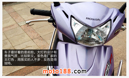 車子最好看的是前臉。大燈的設(shè)計(jì)有點(diǎn)貴族氣質(zhì),比較斯文。紫色是廠家的主打色,周圍買的人不多,反而顯得獨(dú)特。