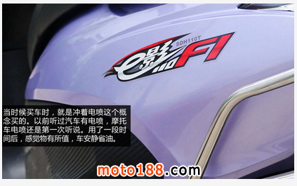 當(dāng)時(shí)候買車時(shí),就是沖著電噴這個(gè)概念買的。以前聽過汽車有電噴,摩托車電噴還是第一次聽說。用了一段時(shí)間后,感覺物有所值,車安靜省油。