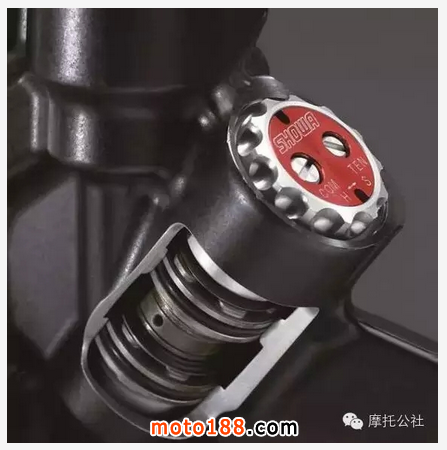 新ZX-10R的避震相當出色。由著名廠商Showa和Kawasaki WSB廠隊聯(lián)手研發(fā)的全新Balance Free前叉,能增加行車時的舒適感、制動時的穩(wěn)定性和輪胎的貼地性。左右兩支倒立前叉分別負責受壓和回彈的油壓作用,氮氣筒吸引和釋放能量,令避震性能更加穩(wěn)定。