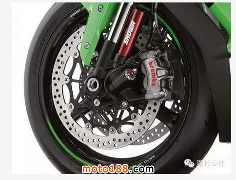 新ZX-10R搭載了Brembo M50鋁合金單件徑向式卡鉗,重量輕、剛性高。配上330mm直徑的雙碟及原廠鋼喉,制動力比老款有所提升。
