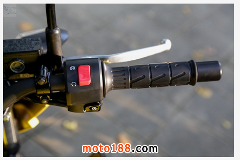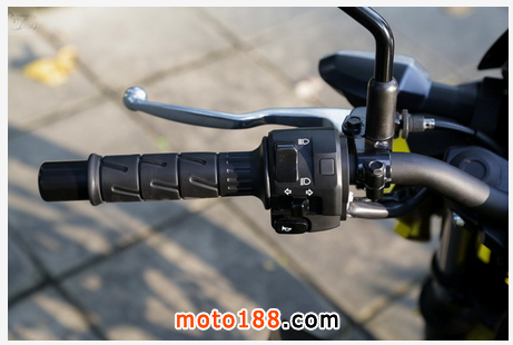左把手總成 離合器采鋼索方式。遠近燈開關、方向燈、喇叭等功能皆備。超車燈使用食指控制,使用上更為方便。