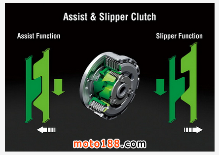 Z300與Ninja 300共享引擎,滑動離合器也是標準配備?;瑒邮诫x合器并不單單只是可滑動那么簡單,還有自動逼緊離合器的結構。除動力傳輸的表現較好,也可減少離合器的拉力,走走停停狀態下較不容易抽筋。
