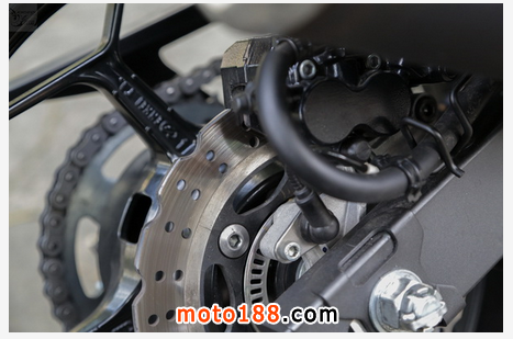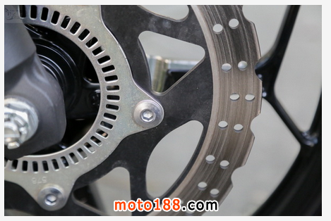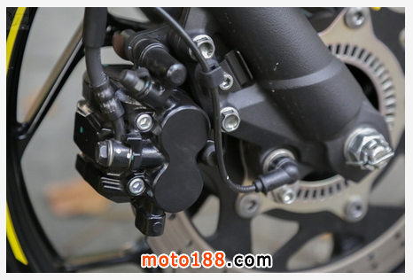 前煞車采用前單碟搭配單向雙活塞卡鉗與浪花碟盤,后煞車也是采用單二卡鉗。