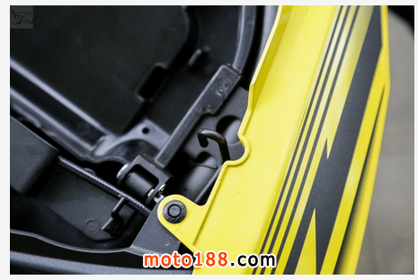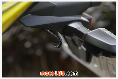 尾殼置物勾與后腳踏小勾搭配,方便車主置物,后座安全帽勾,位于后座坐墊與車殼內側。