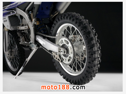 車身方面,采用了與 YZ450F 相同的車架/底盤與懸掛系統、但懸掛的設置略有不同。同時針對耐力越野的特殊性,為右側的散熱水箱配備了風扇、發動機底部加裝了護板和電啟動裝置,多功能的小型數字式儀表板、車頭的大燈、后剎車燈等也一應俱全,而這些都是越野賽車沒有的(或者說是不需要的)。全車的整備重量為 123 公斤,較 YZ450F 的 112 公斤要重。前、后輪框的規格也有所不同(WR450F 為前 21、后18,而 YZ450F 是前 21、后 19)。
