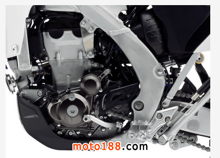新的 WR450F 以市售越野賽車 2015' YZ450F 為基礎改造而成,故廠方對新車冠以 “ 耐力越野的風格、YZ 的技術 ” 之口號。與 YZ450F 相比,WR450F 在功率輸出特性、敏捷性、行使性能上設置以及整備重量方面有所不同,它采用一副與 YZ450F 相同的水冷四沖程后傾式單汽缸、DOHC 四汽閥的發動機,排汽量 449 cc,反向式汽缸頭的設計(進汽系統向前、排汽系統向后),節汽閥口徑為 44 mm 的電子燃油噴注系統、ECU 內部數據經過重新編程,五檔的齒輪箱采用了更寬闊齒輪比的設計(第一檔、第五檔的齒輪比與 YZ450F 相同)以及更耐磨的離合器。