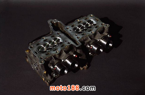 ▲NR500的缸頭,每只氣缸配備8只氣門,2只火花塞