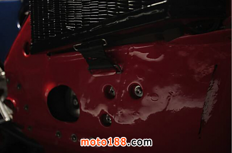 ▲車身包板表面固定發動機的螺絲,包板實際是車架的一部分