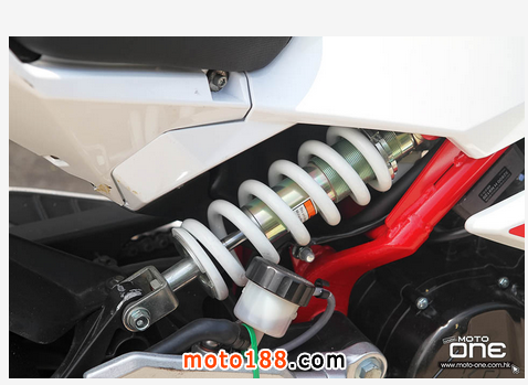 ●更換排氣管及消聲器是釋放馬力的方法之一,HYOSUNG GD250R採用中置式的排氣管擺放設計,使車輛有更佳重心。