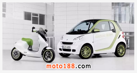 這款電動兩輪車被命名為escooter概念車,采用白色和綠色雙色調,與Smart fortwo電動版一樣,其擋風玻璃和車身飾板上帶有蜂窩狀紋路,大燈采用LED光源。