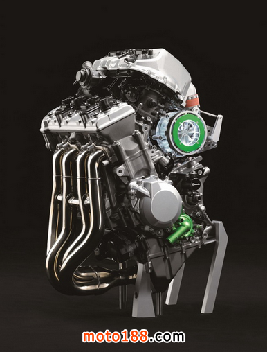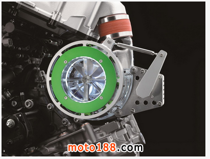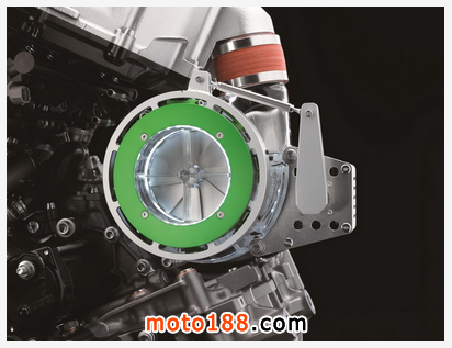 下圖:2016' Ninja “ 忍者 ” H2/H2R 發(fā)動機(jī)及其新的電子控制閥門渦輪增壓系統(tǒng)的特寫。