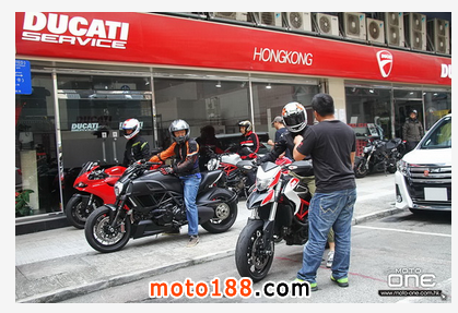 受臺風及天雨的影響,Ducati 試車日一再改期,直至今天(11月8日)終於順利舉行,同樣吸引許多車迷用家參與。其實,Ducati HK陳列室一直提供許Ducati車系預約試駕服務,只需有個人保護裝備及駕駛經驗 (基於安全理由,學牌及P牌不能預約試車),就可以預約指定時間試車。所以,即使錯過今天Ducati 試車日的車迷,也可致電Ducati HK吧﹗