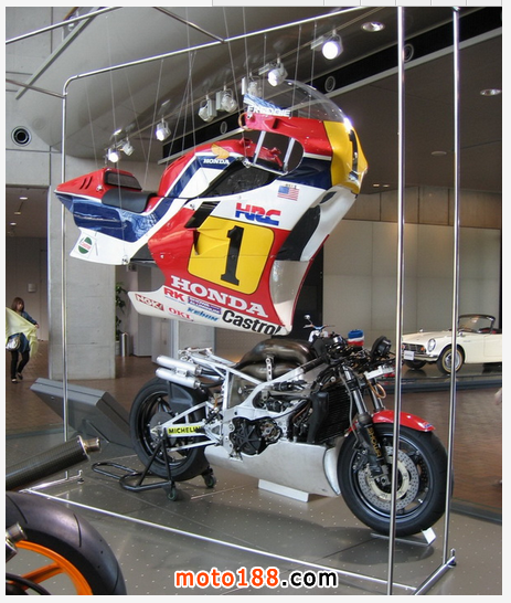 ●1985 HONDA NSR500的二沖GP500戰(zhàn)車,油缸設(shè)於車底下,宏偉的V4排氣鼓令人敬畏。