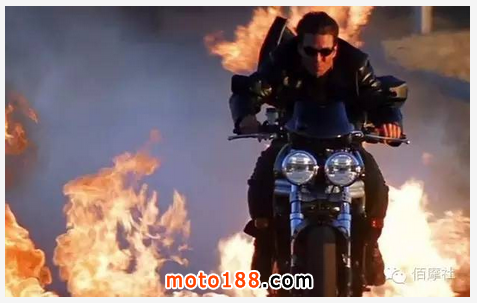 在影片《碟中諜2》的最后一場戲中,阿湯哥一邊單手開摩托車、一邊手持輕機槍追殺大奸角,型爆全場!他駕駛的摩托車Triumph Tpeed Triple(凱旋青蛙)亦成為愛好刺激的年輕人之追捧商品。