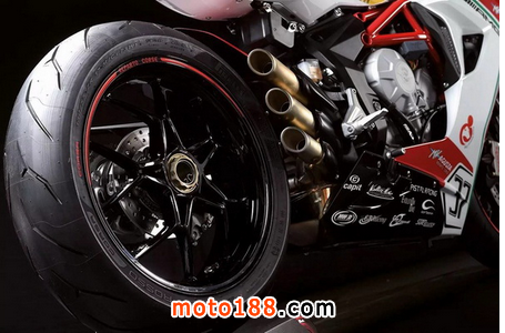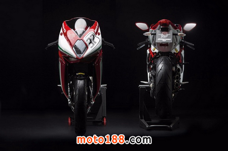 F3 800 RC擁有純正的賽車血統,不僅采用了奧古斯塔WSS賽車的貼花,而且配有賽車手克魯澤爾和扎內蒂的聯合簽名,腳蹬用上了Ergal產品,離合器桿、前剎車桿具有防折斷的接頭……當然,對于這臺風格和性能兼備的意大利跑車,想要物美價廉是不可能的。限量發行250臺的F3 800 RC,售價高達19250美元,比最新版雅馬哈YZF-R1還貴2000多美元;限量發行100臺的F3 675 RC略便宜些,但同樣貴過了YZF-R1。