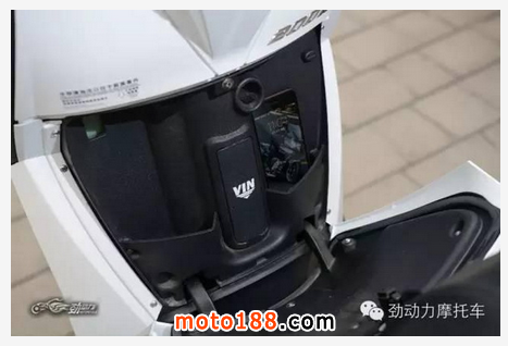 車座面積最大的賽艇300自然也就有著三車中最充足的座下空間,其座下儲物箱可同時放入一頂全盔和一個大號的雙肩背包。此外,支撐車座的液壓桿和座下儲物箱內的LED照明燈也讓它顯得更加精致和體貼。