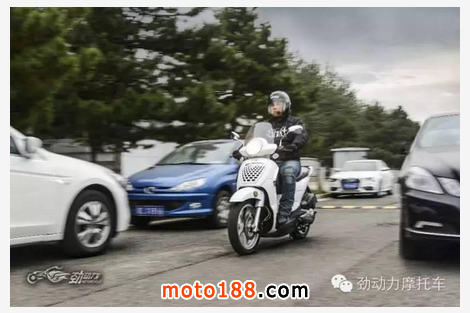 城市的道路也不都是那么平整,凹陷的井蓋和凸起的減速坎是我們要經常面對的。現在明白為什么意大利人喜歡圣甲蟲這樣的大輪踏板車了,大直徑的車輪確實能更好地過濾掉路面的顛簸。而城市之星在這方面就要遜色一些了,軸距與圣甲蟲相當,車輪的直徑又是三款車中最小的。賽艇300的舒適性自然不用多說,雖然沒有像圣甲蟲那樣采用大輪設計,但是傲人的軸距足以讓它能夠平穩從容地行駛在各種鋪裝路面上。