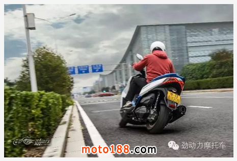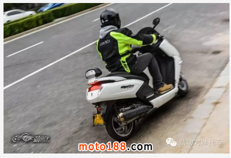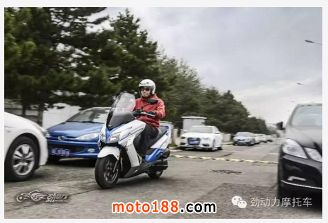 不過,在上下車時賽艇300可不如城市之星和圣甲蟲那樣方便,油箱前置的結構占用了踏板中部的空間,上下車時需要跨過高高隆起的油箱,或者干脆像傳統摩托車那樣騎上去。另外,讓我沒有料到的是,擁有大型踏板車身材的賽艇300,其腿部空間真沒有我想象中的大,即便采用巡航坐姿,我1.83米的身材還是伸不開腿,估計是按照大多數臺灣地區同胞的身材設計的吧?