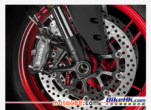 電子系統方面,ABS當然是必備的。用上Bosch ABS 9MP配Brembo卡鉗,內置壓力感應器。ABS備有三段系統,并會因應駕駛模式而有所調節。另一必備的當然是DTC防打滑,這套系統是來自MotoGP及WSBK的技術,備有八段可調,同樣會因應行車模式而有不同設定。新一代的跑車也備DQS快速轉檔,而959的引擎更配上移植自MotoGP的新波段感應,令快速轉檔的反應更精確。不過959 Panigale的快速轉當只適用于上波。另一重點電子系統就是EBC引擎制動控制,這是由Ducati Corse開發的系統,用來幫助騎士更穩定地入彎。系統透過計算油門角度、波段、曲軸減速率等因素,從而透過電腦控制電子油門,令尾輪的扭力得到平衡。