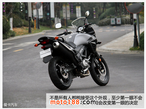 側面線條有些小性格,上一代的硬派作風得到了傳承,不過依然很難有人在鈴木大貿店里為它沖動消費,除非銷售可以找到合適的借口多留住一會顧客,這種情況可能會得到權利反轉。也許顧客會追問DL650的具體情況,直至下單。原因是DL650從外到內挑不出任何明顯問題。