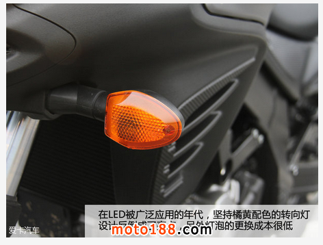 如果不是從設計角度出發,那么細節方面值得商榷。首先,全車沒有使用一個LED光源,當然,我的意思沒有說鹵素光源不好,只是感覺在這個時代,這樣一款車型,會不會有些跟不上趟,甚至大家可以看到,連轉向燈都是懷舊的橘黃色。不過好在大燈采用雙燈碗反射照明,無論近光、遠光,兩只碩大的55W眼鏡都會盯著你不放,毫不給你逃跑的機會。