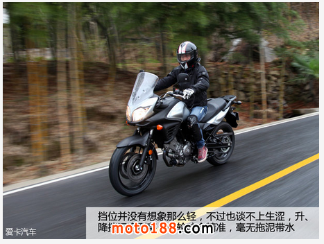 雖然3000轉以下的扭矩表現不是很突出,但依然可以做到輕松起步,隨著緊密而連貫的節奏聲,DL650如待捕獵物的金錢豹般矯捷,瞬間竄了出去。可能是新車的緣故,擋位并沒有預計的輕,想要精準的入擋,腳腕需要適當加點力,除此之外再也挑不出變速箱任何問題了。