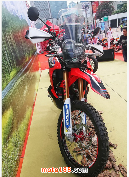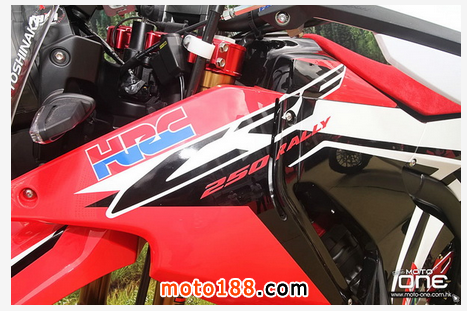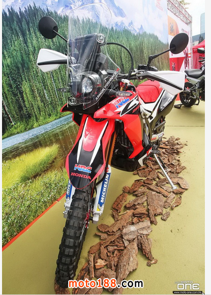 ●在第十屆香港中環(huán)電單車節(jié)出現(xiàn)的CRF250 RALLY,由CRF250L改裝,外型參照HONDA參加達卡比賽廠車CRF450 RALLY設計。