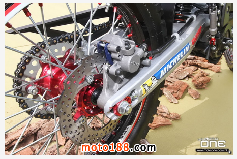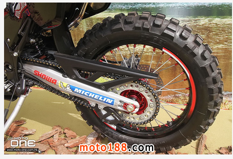一般來說,正宗達卡戰(zhàn)車的特徵是配置高風擋、大燈保護殼及強制安裝在軑把上的路線指南閱讀器護架及GPS器材護架等等,而這臺達卡概念車包含以上元素,這臺車另一亮點是配置了無限的排氣管。CRF250 RALLY跟原裝CRF250L相比,保留了金色的43mm倒立前叉、鋼絲輪框及尾擔等等,但上眼鏡、軑把、座墊及腳踏等等則改用更高級部件。這些改裝讓傳統(tǒng)爬雞外型的CRF250L看起來更特別及吸引。
