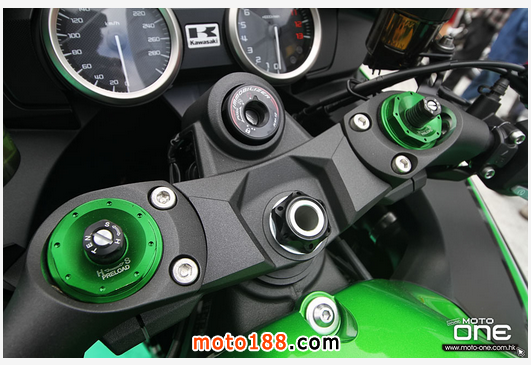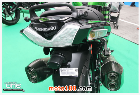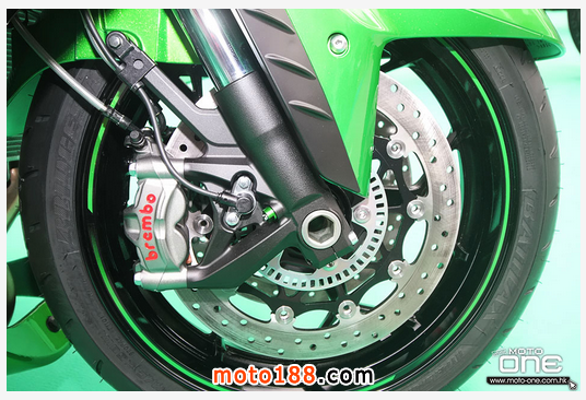 除此之外,前叉頂也由金色改用川崎綠色,並且利用雷射刻上PRELOAD(預載)英文字,圓型轉數表及速度表環也由黑色變為銀色,座墊改用了防滑物料製造,而2016ZZR1400(ZX-14R) Performance Sport特別版亦換上新的配色與拉花。