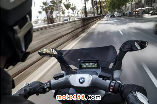 從40km/h到90km/h,BMW C evolution可以用暢快淋漓來形容,0~100km/h的加速時間僅為6.2秒。在緊急制動時,ABS系統被激活,及時防止側滑的發生。如果在出彎時猛開油,后輪會輕微飄移。而這種動作會瞬間被電控系統糾正,也就是說可以在出彎時利用電動機扭矩迅猛攀升的特性小玩一下,而不用擔心漂移過度的危險。還有一個特色挺實用,這車竟然有倒擋。