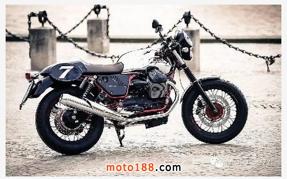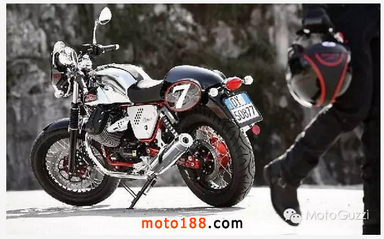 橫置V型90度夾角發動機;744cc排量,五速變速箱及軸傳動;黑色發動機蓋與車體紅色涂裝對比鮮明;裸露的機件更能彰顯機械魅力;雙側閃亮排氣管對稱又耀眼;稍微前傾的騎行坐姿;向70年代“Cafe Racer”致敬。