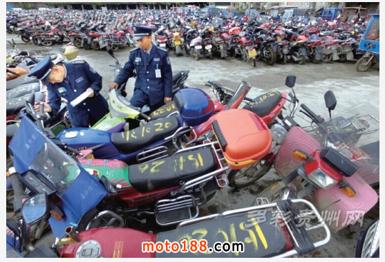 “每輛摩托車入庫前必須經歷四個步驟,首先是編號,然后用油漆在摩托車座位上寫上編號,所謂編號就是收繳日期,比如編號15.12.6,說明是2015年12月6日收繳的。”張光發說,第三步是拍照,包括摩托車前后左右四張照片,最后一步就是登記,包括車輛的車架號、發動機號以及是否上牌。登記的所有信息將會進入貴陽市公安交通管理局涉案物品(車輛)管理信息系統,方便管理與查詢。