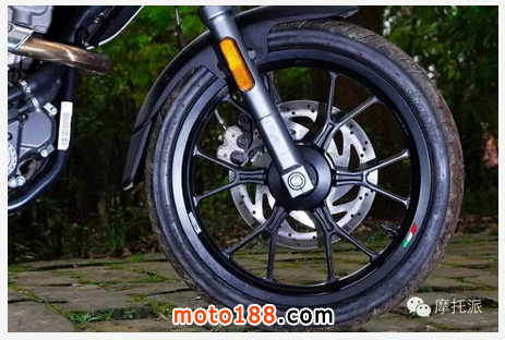 輪胎:前100/80-17,后130/70-17,正新輪胎,運(yùn)動(dòng)型輪輞。不過(guò),我倒覺(jué)得輻條輪配大齒紋胎更帶感,也更好玩。