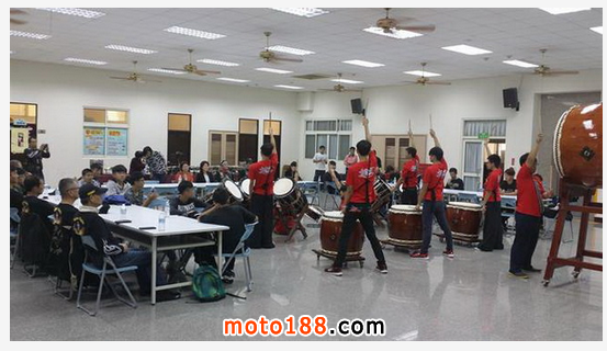 家扶中心希望學園的青少年表演太鼓回報哈雷叔叔們。