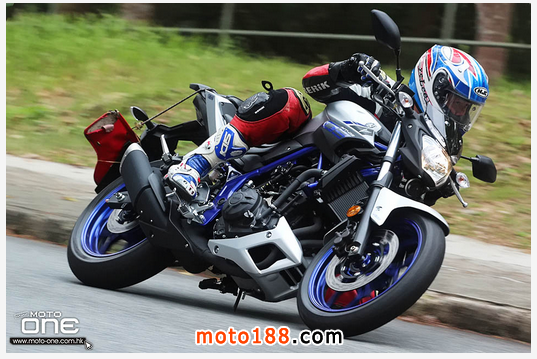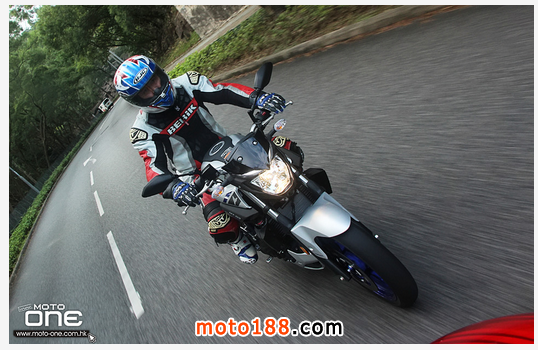 至於MT-03對開慣大排跑車的李有昌來說,42ps馬力當然沒法滿足他的要求,然而 入門車提供的靈活轉向反應是騎士最喜歡的共通點。李有昌說雖然MT-03輕巧細小,但無須屈手屈腳卷縮身體駕駛,即使相對畢直但舒適的座姿(現時NK車流 行輕微俯伏模仿大包圍座姿),配合闊度適中的轪把,雙臂沒有被撐開的感覺,在搬身過彎時上身感到很自然及輕易,即使彎速絕不下於大排跑車,而設定適中的腳 踏在較低傾則角度過彎時也不會磨腳踏。