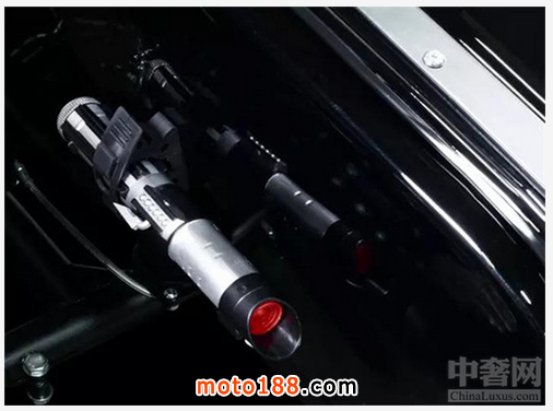 這款《星球大戰》限量版烏拉爾稱為黑暗力量,采用全黑色涂裝,發動機、減震甚至是排氣都漆成黑色,確實夠“黑暗”。而最讓《星戰》迷們興奮的是,在“挎斗”旁邊配備了一把光劍,沒錯!是一把貨真價實可伸縮的一米長光劍!