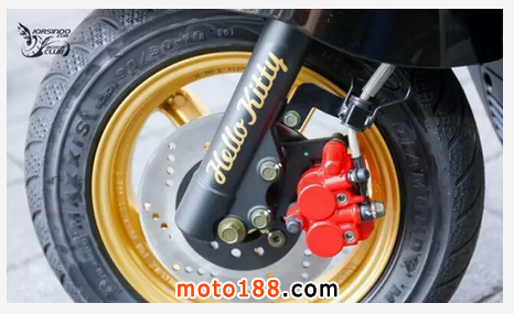 前輪框色調改為金色,前叉外管上印有Kitty字樣。