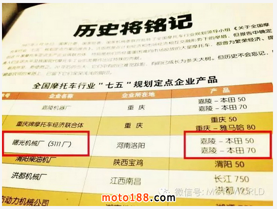 洛陽嘉陵(洛嘉)的前身是國營曙光機(jī)械廠(5111廠),當(dāng)時擔(dān)負(fù)著嘉陵—本田50及嘉陵—本田70型摩托車的生產(chǎn)任務(wù)。