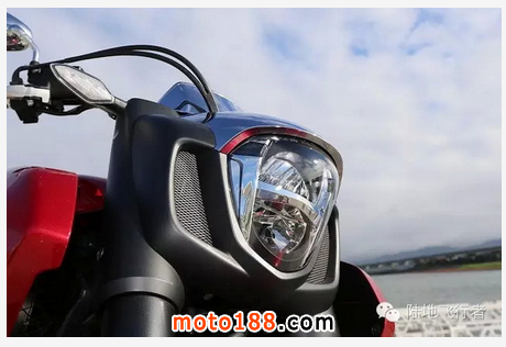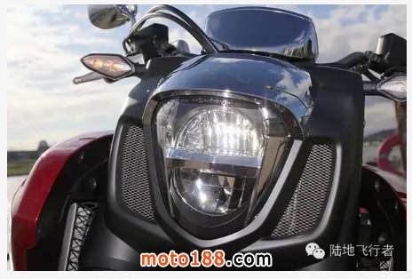 從側面來看,F6C 呈現出三角形的構圖,駕駛的位置就在的正中央,左右則由碩大的車體完全包覆了駕駛。除了引擎,我們也可以從側面看到F6C 的水冷排,環抱車架與排氣管。尤其從水冷排與環抱車架的配置,就能明顯看出F6C 不同于傳統巡航車款之處。