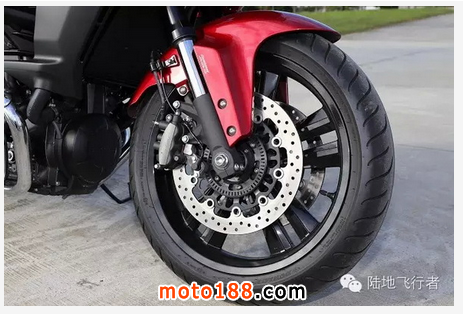打檔桿的設計也相當特別,由于采用水平對臥引擎的關系,變速箱的方向和一般摩托車大不相同,打檔桿的設計當然也不太一樣。整體都包覆在變速箱的外殼內,僅露出打檔桿的末端。由于車體較重,后剎車碟盤采用了摩托車上較少見的雙層通風碟,讓后剎車不致過熱,可維持穩定效能。