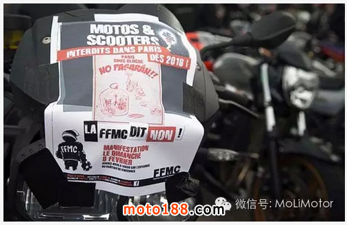 法國憤怒車手聯(lián)合會(FFMC)的海報上寫著:“巴黎2016年禁止摩托車,F(xiàn)FMC說不!”