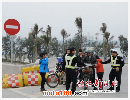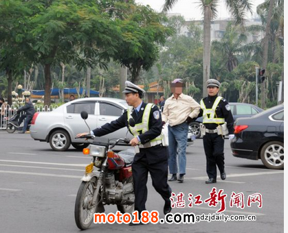 核心提示: 交警嚴把安全關,加大對摩托車整治力度。 市區交警嚴查違規摩托車上路駕駛。 湛江新聞網訊:從明年1月1日起,市區本地牌
