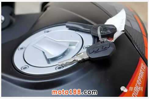簡易的鎖頭搭配上刻著KTM字樣的鑰匙,鎖頭僅具三項功能,分別是龍頭鎖定、電門開、關。與車身的整體設計如出一轍,精簡的設計外觀,就是不要多余的修飾。不過以檔車來說,鎖頭功能也是相當有限,畢竟不如速克達一般,將多項功能整合在鎖頭當中。